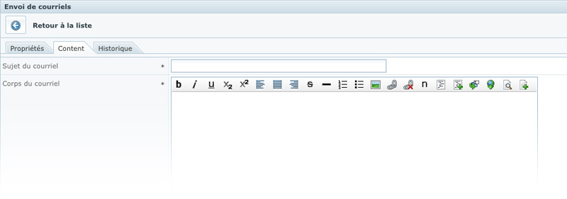 - Cliquez sur l'onglet Contenu pour configurer le contenu du courriel.