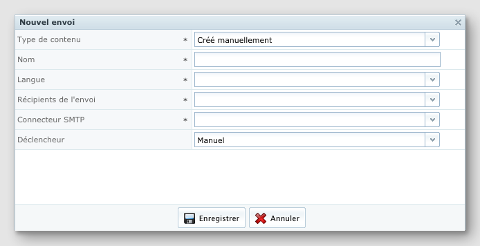 - Lancement : Cette option permet de spécifier si l'envoi sera lancé automatiquement, ou manuellement.