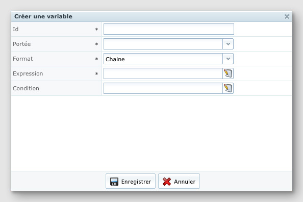- Format : C'est le format de la variable. Les formats disponibles sont : chaîne, texte, nombre, date, date avec heure, décimale, monétaire.