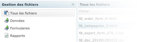 - Le sous-menu Tous les fichiers : contient la liste de tous les fichiers générés par les utilisateurs.