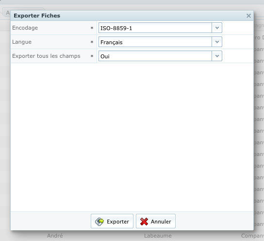 - Langue : choisissez la langue des fiches à exporter