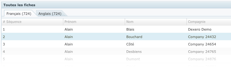 - Sélectionnez une fiche dans la liste (ou suite à une recherche). La fiche sélectionnée est alors surlignée en bleu.