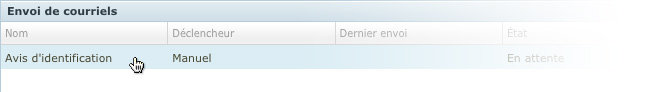 - Cliquez sur l'envoi courriel pour le sélectionner. L'envoi courriel sera surligné en bleu.