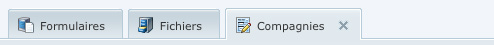Les onglets (à l'exception de Formulaires et Fiches) peuvent être fermés en cliquant sur le "X" à la droite du libellé.