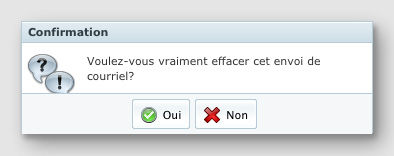 - Une boîte de dialogue de confirmation apparaît. Une fois que vous confirmez la suppression, l'envoi courriel sera définitivement supprimée de votre formulaire.