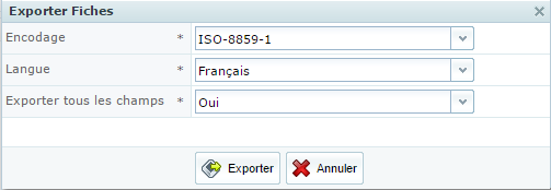 - Langue : Le menu déroulant Langue permet de sélectionner la langue du fichier d'exportation.