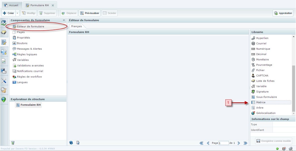 - Double cliquer sur entrer le libellé ici pour accéder au détail du champ.