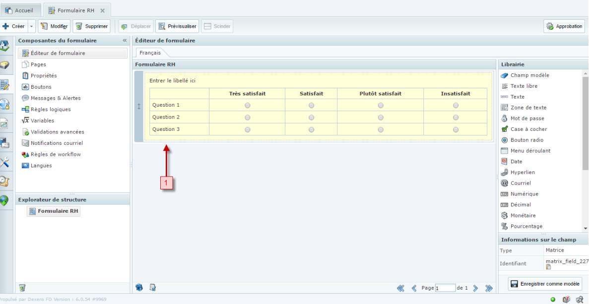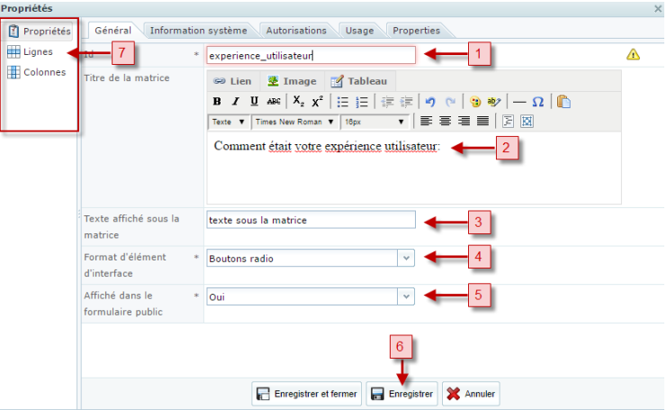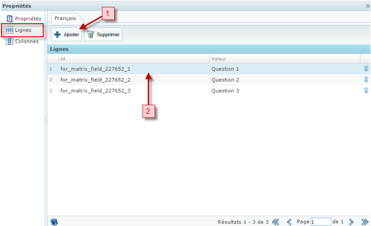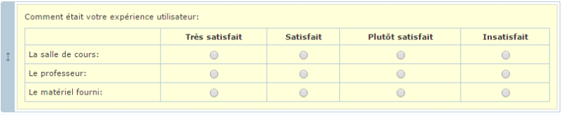Le champ Matrice permet la création de réponses de sondages en ligne.