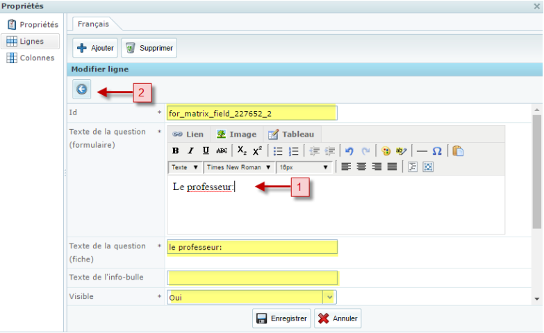 - Texte de la question (formulaire): Inscrire votre texte dans l'espace réservé à cet effet.